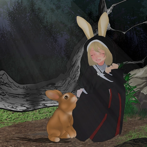 Unlike her cousin, Gothbae is much less genki but still has a good heart. While working at an occult bookstore she likes to take care of stray cats in her spare time.